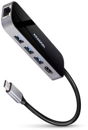 Wieloportowy hub USB-C 3.2 Gen 1 AXAGON HMC-6GL zapewnia twój laptop, komputer lub telefon o sześć portów. Prosto i szybko podłącz trzy urządzenia USB, kartę sieciową Gigabit i wyświetlacz HDMI do komputera równocześnie, przez podwójne złącze USB-C. Możesz także zasilić laptopa dzięki technologii Power Delivery. Hub USB-C zapewni prostą i kompaktową stację dokującą 6w1 dla notebooków takich jak MacBook Pro.