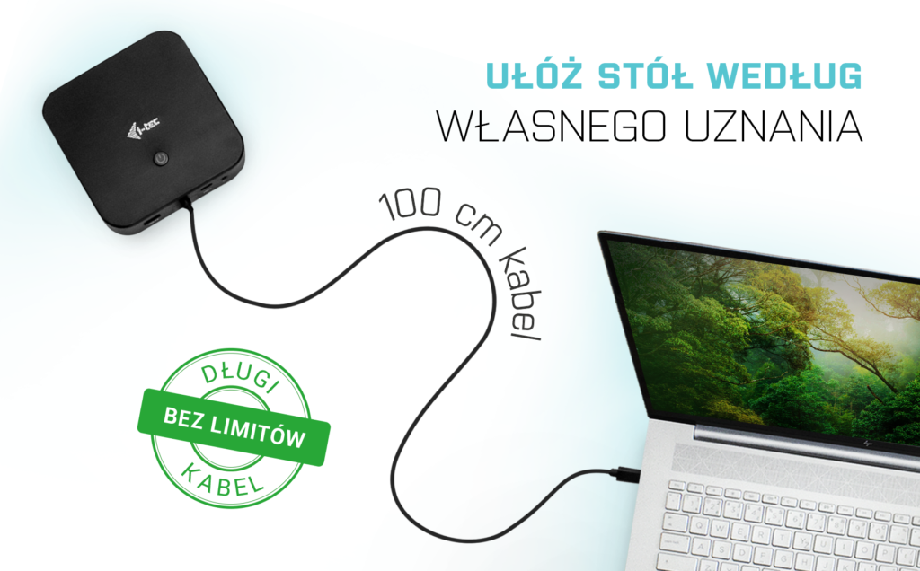 Wysokiej jakości kabel USB-C o długości 1m zapewni wystarczającą ilość miejsca na stole i co najważniejsze możliwość zorganizowania środowiska pracy zgodnie z własnymi wymaganiami. Krótsze kable często ograniczają różnorodność zastosowań, a w niektórych przypadkach nawet uniemożliwiają podłączenie wszystkich niezbędnych akcesoriów.