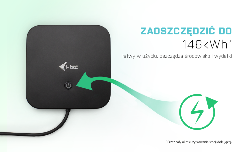 Każde urządzenie elektryczne ma minimalne ciągłe zużycie energii, które wzrasta od dziesiątek do setek niepotrzebnie zużytych i zapłaconych kilowatów w całym okresie użytkowania. Możesz jednak w razie potrzeby wyłączyć naszą stację dokującą, oszczędzając zarówno środowisko, jak i portfel.