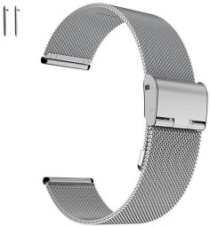 Trwała, srebrna bransoleta pasuje do zegarka smartwatch o szerokości przy mocowaniu 18 mm, pasuje, np. do takich modeli jak Garmin Vivoactive 4S / Garmin Venu 2S / 3S / Garmin Vivomove 3S / Garmin Forerunner 255S / 255S Music / Huawei Watch Gt 4 41mm. Ta modna bransoleta została zrobiona z wysokiej jakości, wytrzymałej stali nierdzewnej milanese Steel. Solidne i staranne wykonanie, mocna konstrukcja, wytrzymałe zapięcie to wszystkie sprawia, że ta bransoleta to coś więcej niż tylko modny dodatek do garderoby. Nasza stalowa bransoleta do zegarka smartwatch o szerokości 18mm przy mocowaniu posiada szeroki zakres regulacji dlatego łatwo dopasujesz ją do swoich potrzeb.