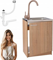 Stamar Szafka Kuchenna Sonoma 60 Slim + Zlew Deante + Syfon + Bateria Wysoka Beż