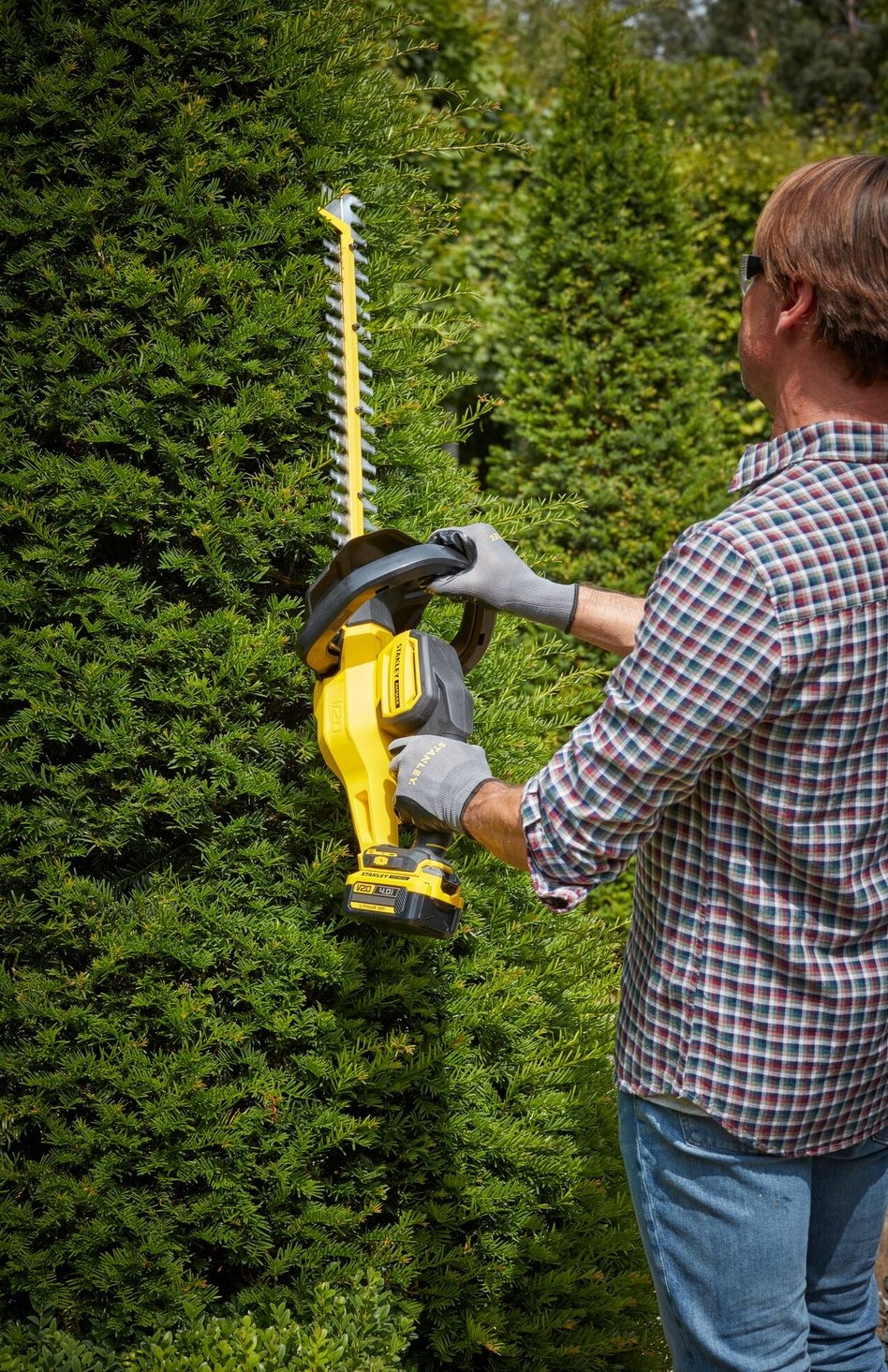Nożyce do żywopłotu 18V STANLEY® FATMAX® V20 55 cm SFMCHT855B-XJ to wydajne i ergonomiczne narzędzie przeznaczone do pielęgnacji żywopłotów i krzewów w ogrodzie. Jako część systemu akumulatorowego V20, oferują swobodę pracy bezprzewodowej, eliminując ograniczenia związane z kablami zasilającymi. Model ten został zaprojektowany z myślą o zapewnieniu precyzji cięcia oraz komfortu nawet podczas dłuższej pracy. Dostarczane jest jako samo narzędzie, bez akumulatora i ładowarki w zestawie.