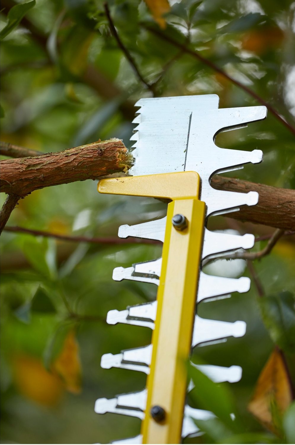 Sercem urządzenia jest trwały, wycinany laserowo brzeszczot o długości 55 cm, wykonany z hartowanej stali. Podwójne, naprzemianległe ostrza zapewniają precyzyjne i czyste cięcie, minimalizując uszkodzenia roślin. Kluczową innowacją w tym modelu jest funkcja Power Saw™, czyli specjalnie wyprofilowana końcówka ostrza, która umożliwia cięcie grubszych gałęzi o średnicy do 35 mm. Standardowa maksymalna grubość cięcia dla pozostałej części ostrza wynosi 19 mm, co pozwala na efektywną pracę z większością popularnych gatunków żywopłotów.