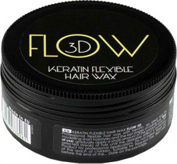 FLOW 3D Keratin Flexible Hair Wax to keratynowy wosk do włosów, który przeznaczony jest do utrwalania krótkich fryzur i pojedynczych pasm, pozostawiając je na miejscu przez cały dzień. Utrzymuje się na włosach nie sklejając ich i nie dając im wrażenia ciężkości. Dodaje objętości i blasku. Profesjonalna formuła zawiera keratynę, która odżywia włosy od zewnątrz.