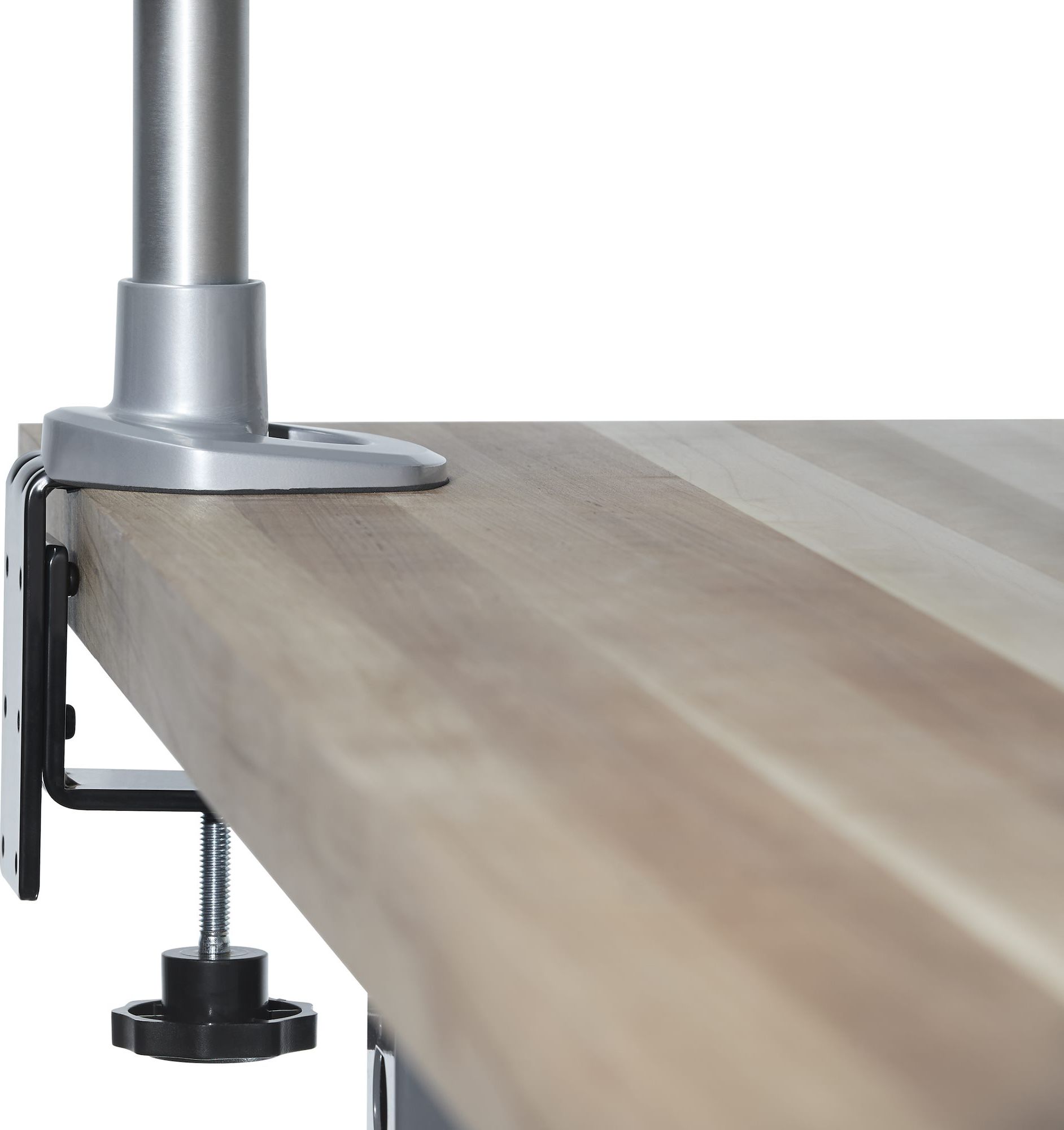 Uchwyt biurkowy umożliwia przymocowanie go do blatu za pomocą zacisku. Taki rodzaj uchwytu jest skierowany przede wszystkim do osób chcących zachować miejsce na biurku, co pomoże poprawić nie tylko ergonomię pracy, ale również zapewni czystość i nienaganną estetykę przy stanowisku komputerowym.