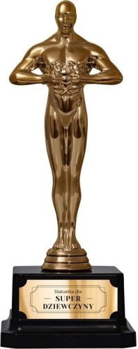 Personalizowana statuetka na prezent z napisem (dedykacja widoczna na zdjęciu). Odkryj wyjątkowy sposób, aby wyrazić swoje uczucia - z naszym personalizowaną statuetką na prezent z napisem. Idealna dla każdej ważnej i wyjątkowej osoby Twoim życiu, bez względu na okazję. Świetnie sprawdzi się jako upominek na szereg okazji. Wygląd statuetki: Ta elegancka złota statuetka urzeka swoją elegancką, stylową kolorystyką i modnym designem. Złoty odcień, wzbogacony czarnym napisem, nadaje jej wyrafinowany charakter. Unikalny napis nadrukowany na statuetce, dodaje osobistego akcentu. Specyfikacja: Materiał: Tworzywo sztuczne, plastik Kolor postumentu: Czarny Wysokość: 19,5 cm Grawer na laminowanej naklejce umiejscowionej na statuetce wykonywany jest techniką laserową