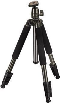 Aluminiowy statyw z 4-sekcyjnymi nogami z aluminium, głowicą kulową 3-D z kostką z podkładem z korka i gumowymi stopkami. Ponadto, statyw wyposażony jest w klamry do ustawiania wysokości nóg i gąbkę antypoślizgową na nogach. Statyw waży 740 g.