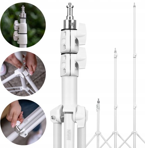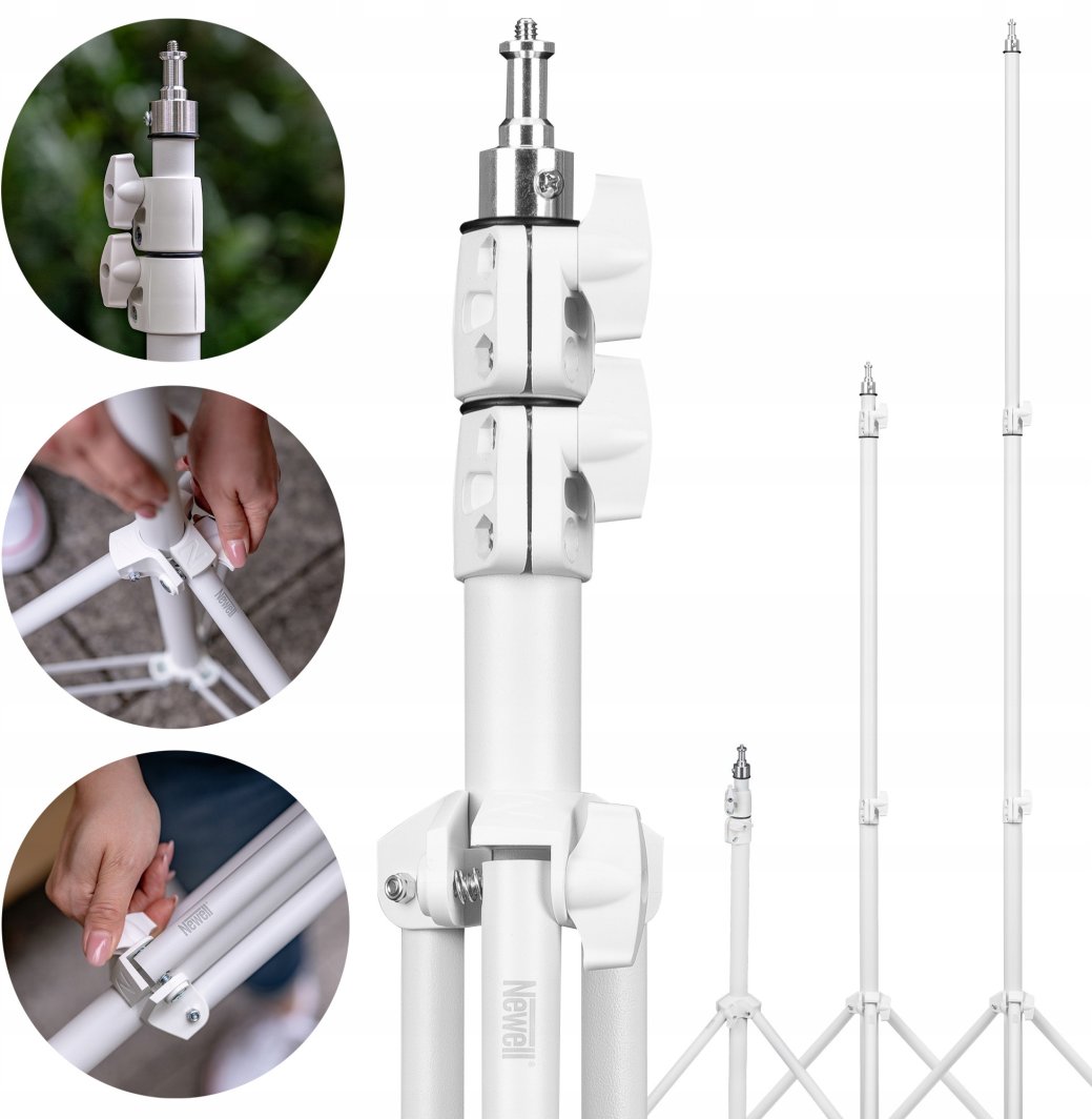 Biały kolor statywu Newell Taranis sprawia, że wyróżnia się on na tle typowych czarnych modeli, dodając nowoczesnego i minimalistycznego charakteru każdemu studio. Idealnie komponuje się z wnętrzami, co czyni go doskonałym wyborem dla profesjonalistów z branży beauty oraz twórców wideo.