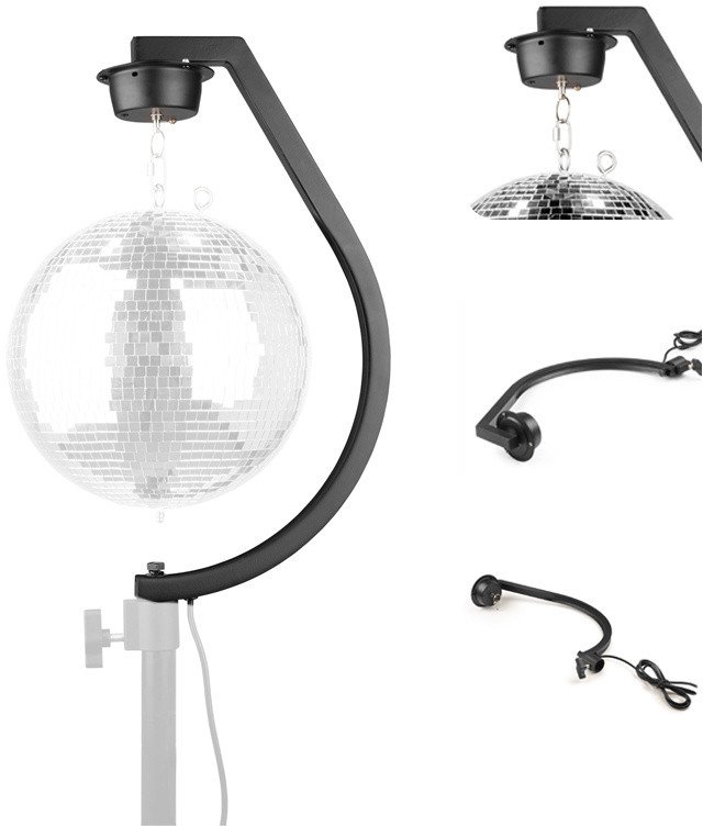 Wolnostojący stojak na kule dyskotekowe MBS30 nadaje się do każdej standardowej kuli dyskotekowej o średnicy do 30 cm i ma wbudowany silnik obracający się z prędkością 3 obr./min. Hak MBS30 można zamontować na dowolnym standardowym stojaku głośnikowym. Solidna stalowa konstrukcja zapewnia stabilność, a elegancki wygląd sprawia, że jest to idealny uchwyt do zawieszania na przyjęcia, wesela i inne specjalne wydarzenia.