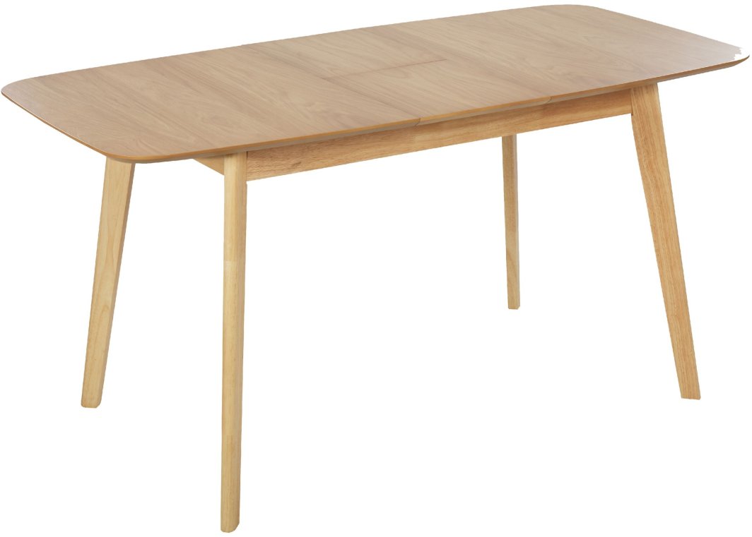 Rozsuwany stół w stylu retro o naturalnym wykończeniu. Elegancki stół rozkładany w kolorze jasnego drewna, inspirowany stylem retro stanie się ponadczasowym elementem każdej jadalni. Wytrzymały blat został wykonany z wysokiej jakości płyty MDF, która jest łatwa w pielęgnacji. Smukłe nogi z drewna kauczukowego dopełniają elegancki wygląd stołu, gwarantując jego stabilność. Ponadczasowe wzornictwo sprawia, że stół sprawdzi się w różnych aranżacjach wnętrz, zarówno tradycyjnych, jak i nowoczesnych.