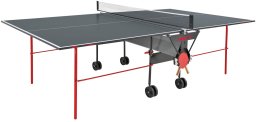 Stół do tenisa stołowego TIBHAR 1000 to kompleksowe rozwiązanie do gry. W zestawie znajdują się uchwyty na rakiety i piłki, co zwiększa komfort użytkowania i umożliwia łatwe przechowywanie akcesoriów. Dodatkowo, siatka do tenisa stołowego jest również dołączona, co sprawia, że stół jest gotowy do gry od razu po rozpakowaniu.