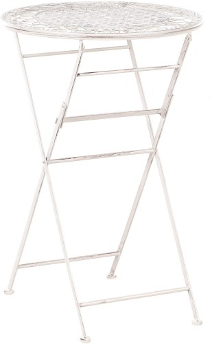 Składany stolik barowy w stylu retro. Dwuosobowy stolik ogrodowy barowy w klasycznym odcieniu beżu, inspirowany stylem prowansalskim. Jego przyciągający wzrok design i niebanalne zdobienia na blacie dodadzą elegancji każdemu balkonowi. Doskonale współgra z metalowymi krzesłami, które możesz udekorować poduszkami i kocami w dowolnej kolorystyce. Stolik można złożyć w celu wygodnego przechowywania i łatwo przenosić z miejsca na miejsce.
