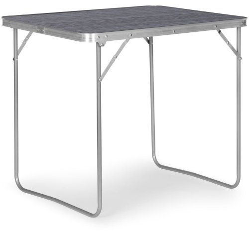 Stół wykonany z dobrej jakości materiałów. Połączenie aluminiowej konstrukcji stelaża z blatem z płyty MDF zapewnia solidność i stabilność stołu. Atutem jest jego niska waga, zapewniająca bezproblemowy transport. Stolik łatwo się rozkłada, a po złożeniu przyjmuje wygodną formę walizki. Wbudowany uchwyt ułatwia przenoszenie.
