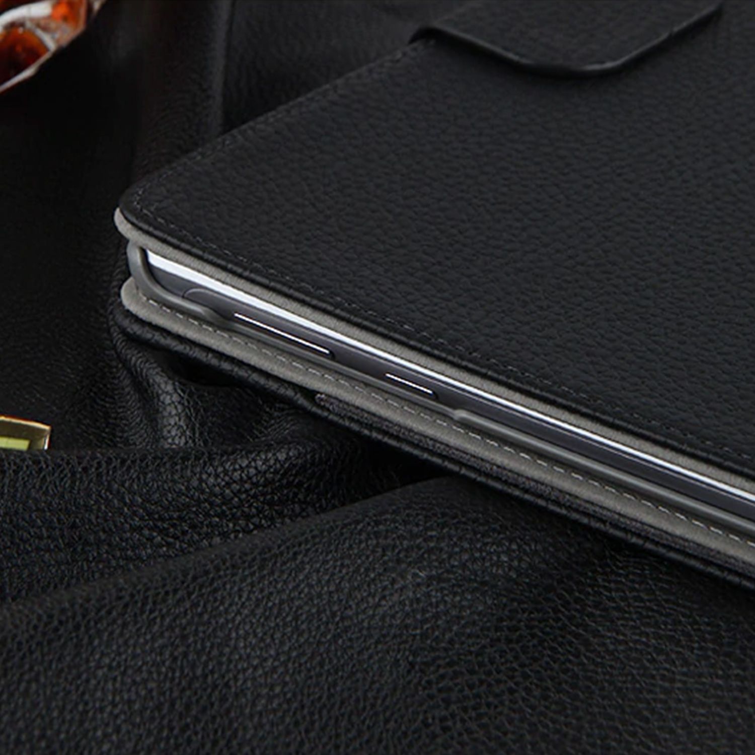 Etui zamykane jest za pomocą magnetycznego zatrzasku umieszczonego na skórzane opasce etui.