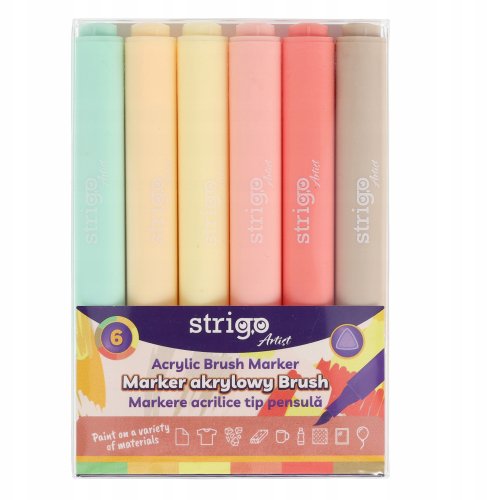 Markery akrylowe Strigo w zestawie 6 kolorów to znakomite rozwiązanie dla dzieci i młodzieży, które pragną rozwijać swoje zdolności artystyczne. Te nowoczesne markery doskonale nadają się do realizacji różnorodnych projektów, od prostych rysunków po bardziej skomplikowane dzieła sztuki.