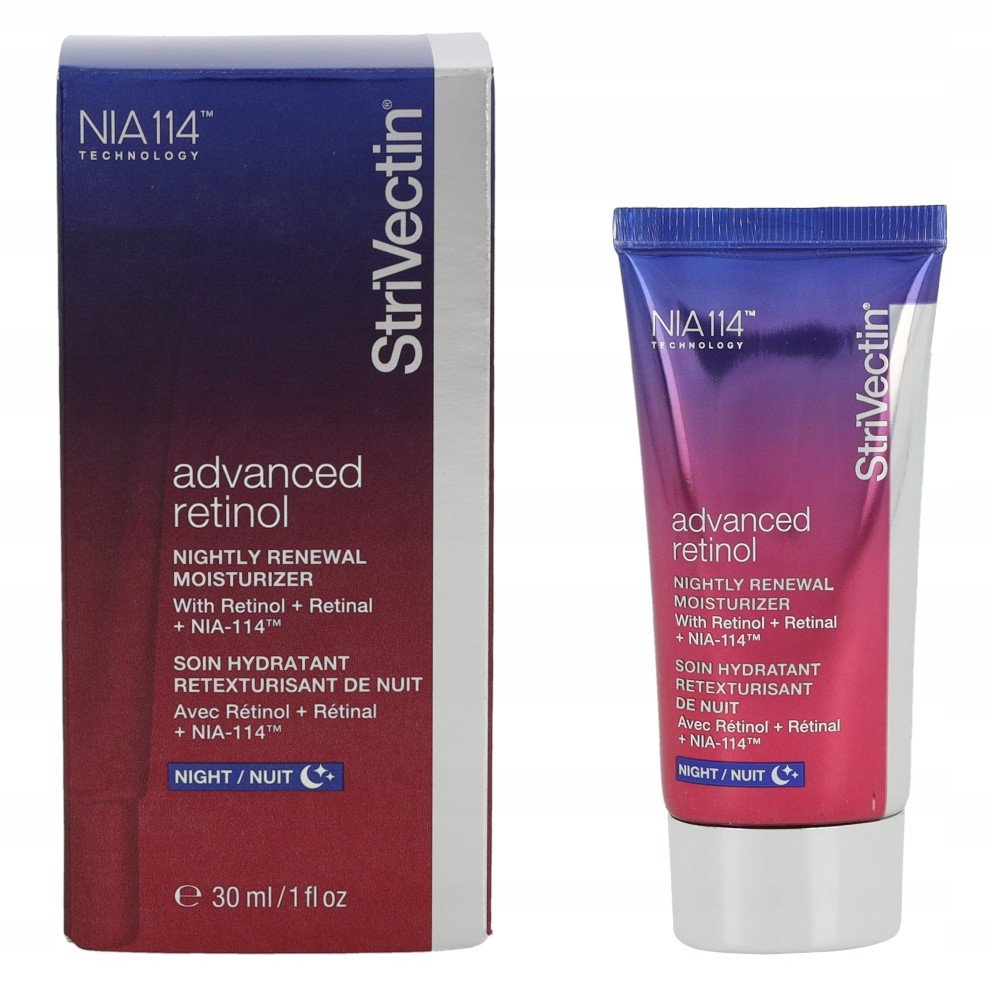 StriVectin Advanced Retinol Nightly Renewal Moisturizer to nowatorski nawilżający krem na noc, który łączy w sobie moc retinolu oraz retinalu, skutecznie korygując oznaki starzenia. Jego wyjątkowa formuła czyni go idealnym rozwiązaniem dla osób pragnących poprawić kondycję skóry oraz zredukować widoczność drobnych linii i zmarszczek.