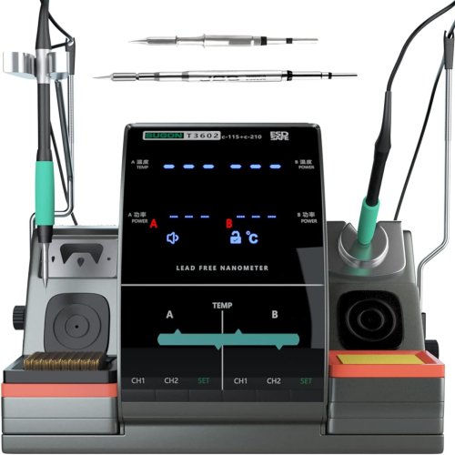Oferujemy Państwu SUGON T3602 220V STACJĘ LUTOWNICZĄ LUTOWNICY, która jest doskonałym narzędziem dla profesjonalistów zajmujących się naprawą elektroniki. To urządzenie wyróżnia się unikalną konstrukcją dwustanowiskową, umożliwiając równoczesną pracę na dwóch uchwytach lutowniczych, oraz wysokiej jakości konfiguracją sprzętową.