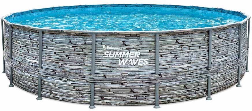 Summer Waves Elitarny basen z ramkami Okrągły basen naziemny Kompletny zestaw Wygląd kamienia 549x132 cm