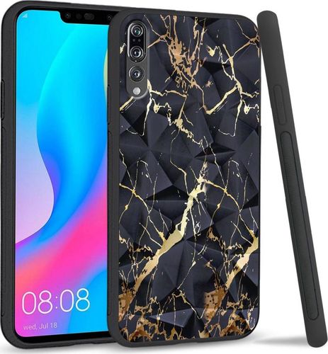 Super Fashion Etui na telefon Huawei P20 Pro Crysta Pokrowiec Black gold granite
