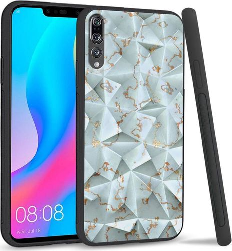 Super Fashion Etui na telefon Huawei P20 Pro Crysta Pokrowiec Golden blue granite