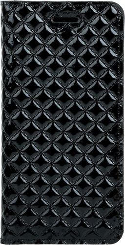 Surazo Etui na telefon Surazo ze skóry naturalnej Smart magnet RFID - Pikowane romby - Czarny Błyszczący
