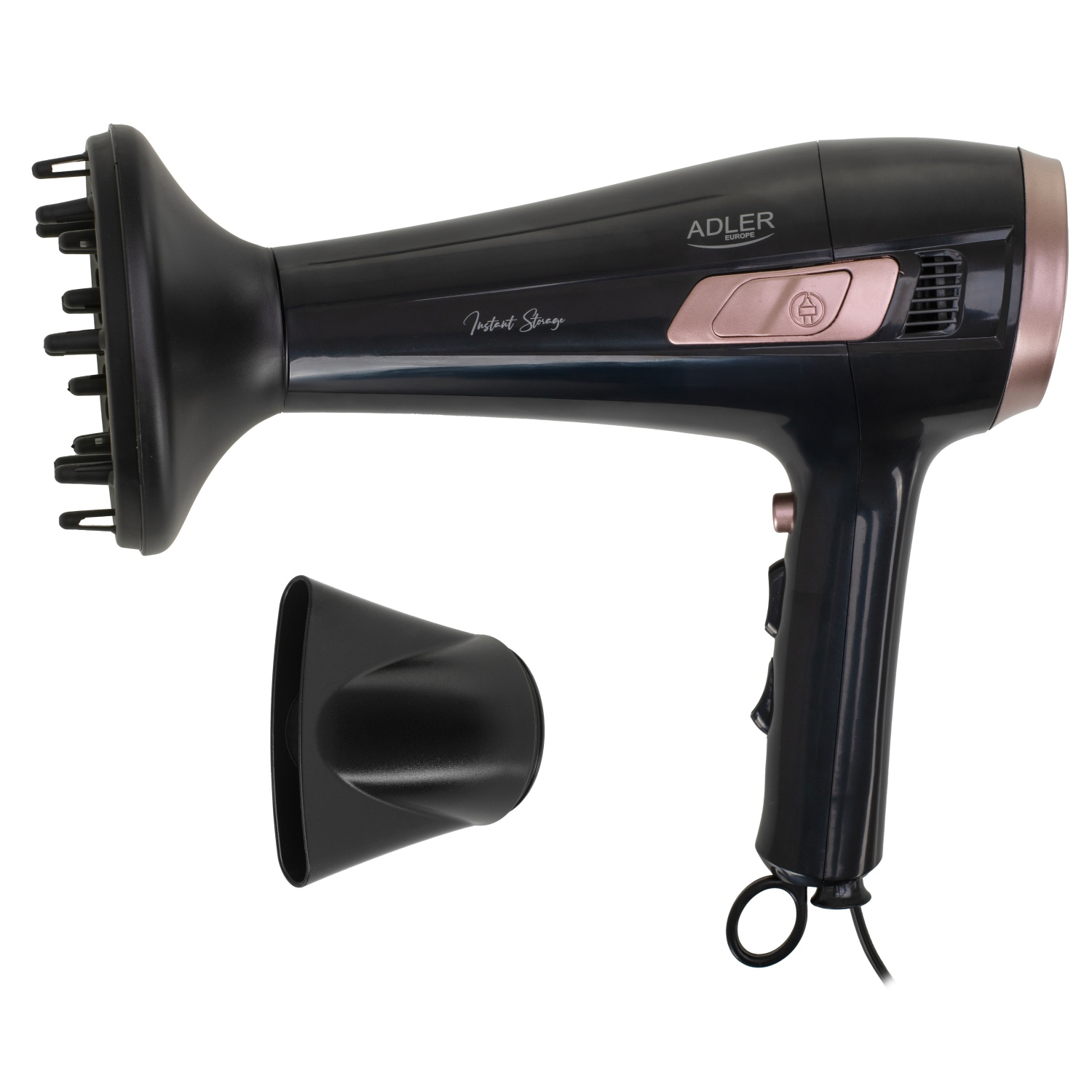 Suszarka Adler AD 2283 to urządzenie, które łączy w sobie potężną wydajność z wyjątkowym komfortem użytkowania. Dzięki imponującej mocy maksymalnej 2400 W, suszarka błyskawicznie radzi sobie nawet z gęstymi i długimi włosami, skracając czas porannej toalety do minimum. Elegancki design, łączący klasyczną czerń z akcentami w kolorze różowego złota, sprawia, że urządzenie prezentuje się niezwykle stylowo w każdej łazience. To idealny wybór dla osób, które oczekują profesjonalnych efektów suszenia w domowym zaciszu.