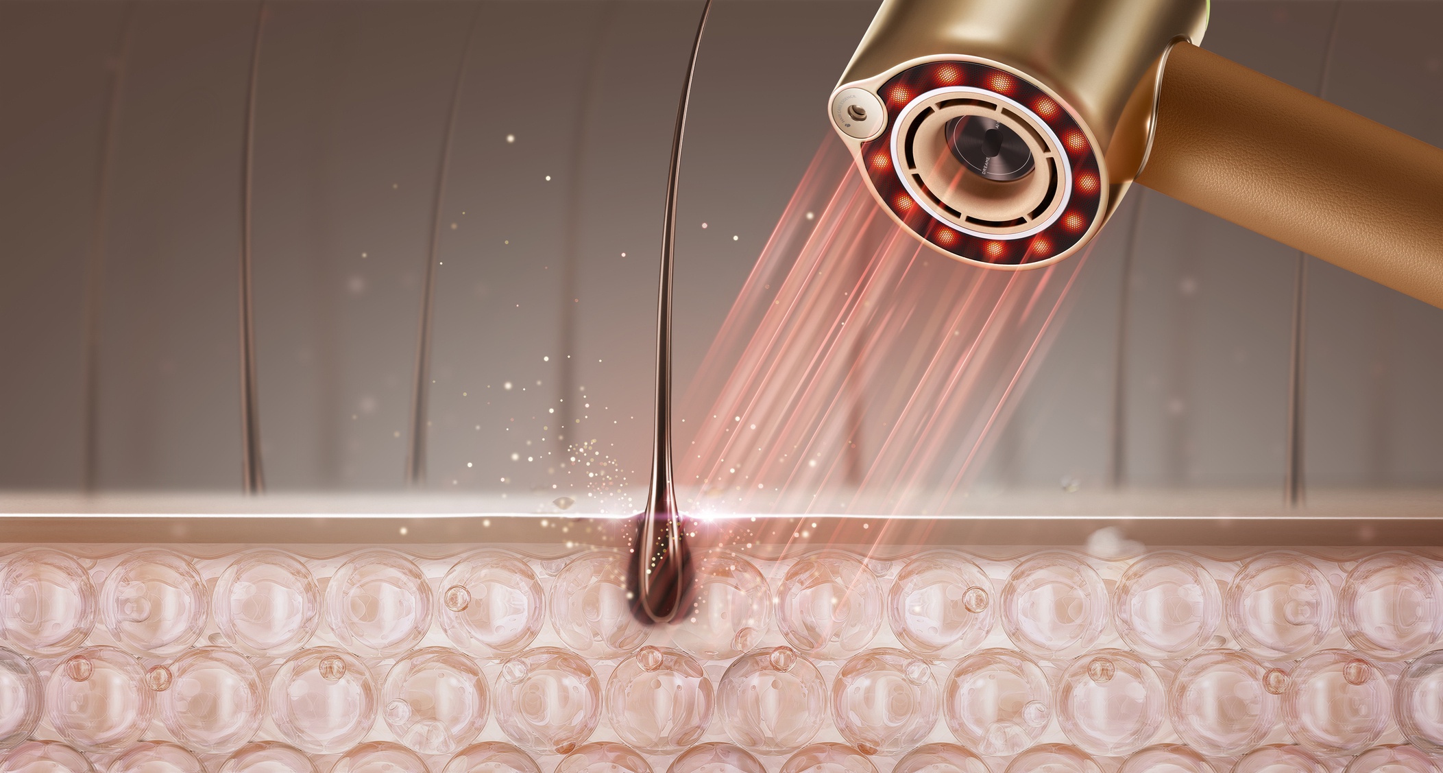 Urządzenie wyposażono w system pielęgnacji światłem o dwóch długościach fali (1064 nm i 633 nm). Technologia ta wspiera mikrokrążenie w skórze głowy i poprawia wchłanianie składników odżywczych przez cebulki, stymulując metabolizm mieszków włosowych. W efekcie włosy stają się silniejsze, zdrowsze i mniej łamliwe.
