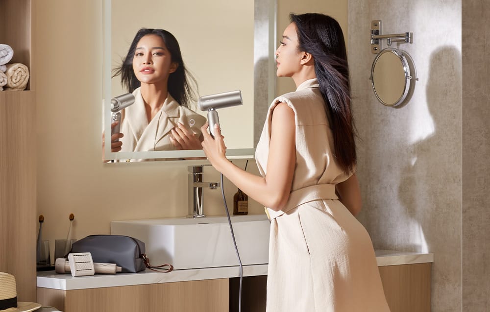 Suszarka Dreame Pocket Pro emituje aż 300 000 000 jonów ujemnych na cm³, które neutralizują elektryczność statyczną, domykają łuski włosów i zatrzymują wilgoć. Dzięki temu włosy stają się gładsze, bardziej lśniące i mniej podatne na puszenie.