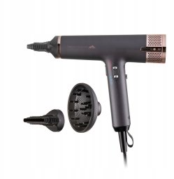 W zestawie z suszarką znajdują się trzy praktyczne nasadki: dwa obrotowe koncentratory oraz dyfuzor, które umożliwiają różnorodne stylizacje. Dodatkowo, system łatwego mocowania końcówek magnetycznych oraz odłączany filtr ułatwiają czyszczenie i użytkowanie urządzenia.