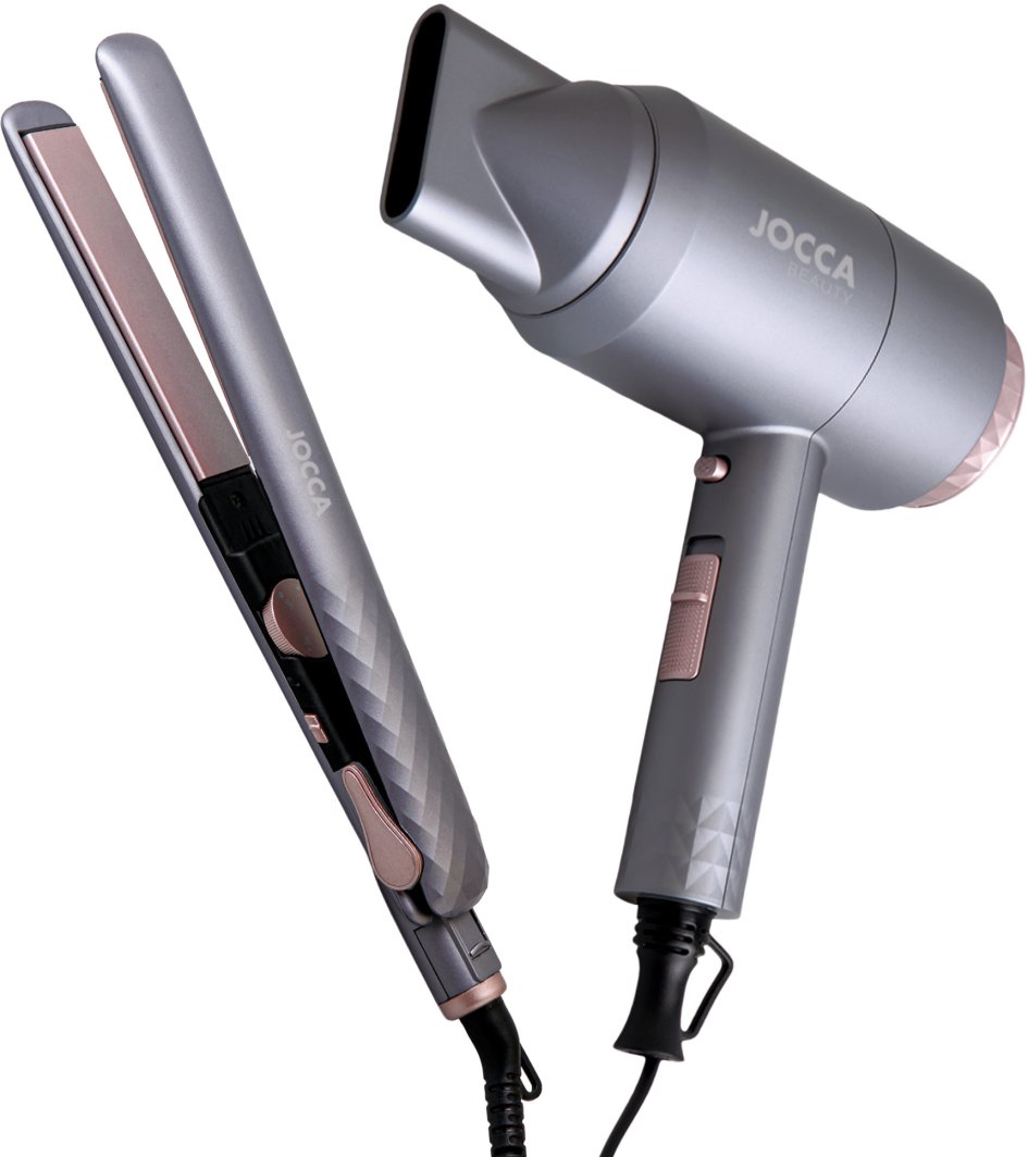 Zestaw JOCCA 2756 wyróżnia się nowoczesnym i eleganckim wyglądem, który z pewnością przyciągnie uwagę. Ciemnoszare wykończenie z metaliczno-różowymi detalami sprawia, że urządzenia są nie tylko funkcjonalne, ale również stanowią stylowy dodatek do każdej łazienki. Długość kabli wynosząca 1,8 m zapewnia wygodę manewrowania podczas stylizacji.