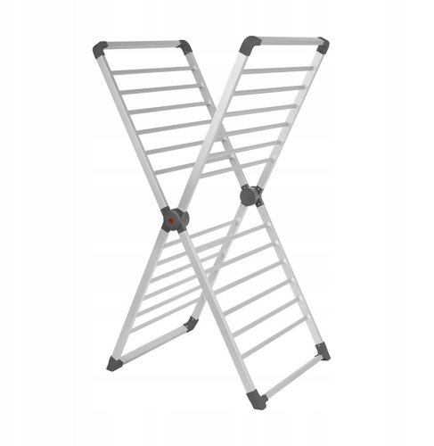 Suszarka N'oveen ECD40 wyróżnia się pionową konstrukcją w kształcie litery „X”, co zapewnia stabilność oraz umożliwia rozwieszenie większej ilości prania, nie zajmując przy tym dużo miejsca. Jej kompaktowe wymiary sprawiają, że doskonale sprawdzi się w mieszkaniach o ograniczonej przestrzeni, a składana konstrukcja ułatwia przechowywanie.