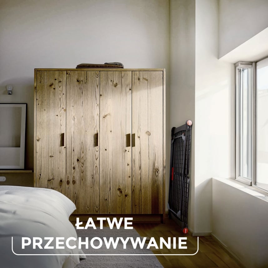 Po użyciu można złożyć suszarkę i przechowywać ją na płasko w dowolnym miejscu. Blokada skrzydeł zapobiega niekontrolowanemu rozłożeniu.