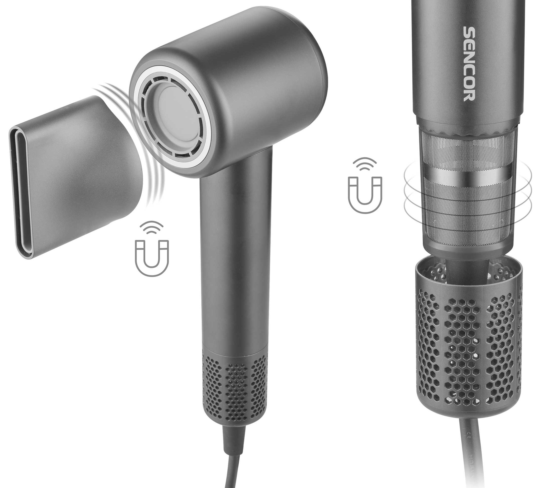 Sencor SHD 8510SL to mistrzostwo formy i funkcjonalności. Ważąc zaledwie 350 gramów, suszarka odciąża nadgarstek, sprawiając, że nawet długie modelowanie jest bezwysiłkowe. Jej minimalistyczna, szara obudowa kryje w sobie przemyślane rozwiązania ułatwiające życie: długi, 2,5-metrowy przewód zapewnia swobodę ruchów, a intuicyjny układ przycisków gwarantuje pełną kontrolę. Nowoczesny charakter urządzenia podkreślają magnetyczne mocowania – zarówno precyzyjny koncentrator, jak i filtr powietrza instaluje się w ułamku sekundy. To sprzęt, który jest nie tylko piękny i łatwy w czyszczeniu, ale przede wszystkim stworzony z myślą o Twoim komforcie.