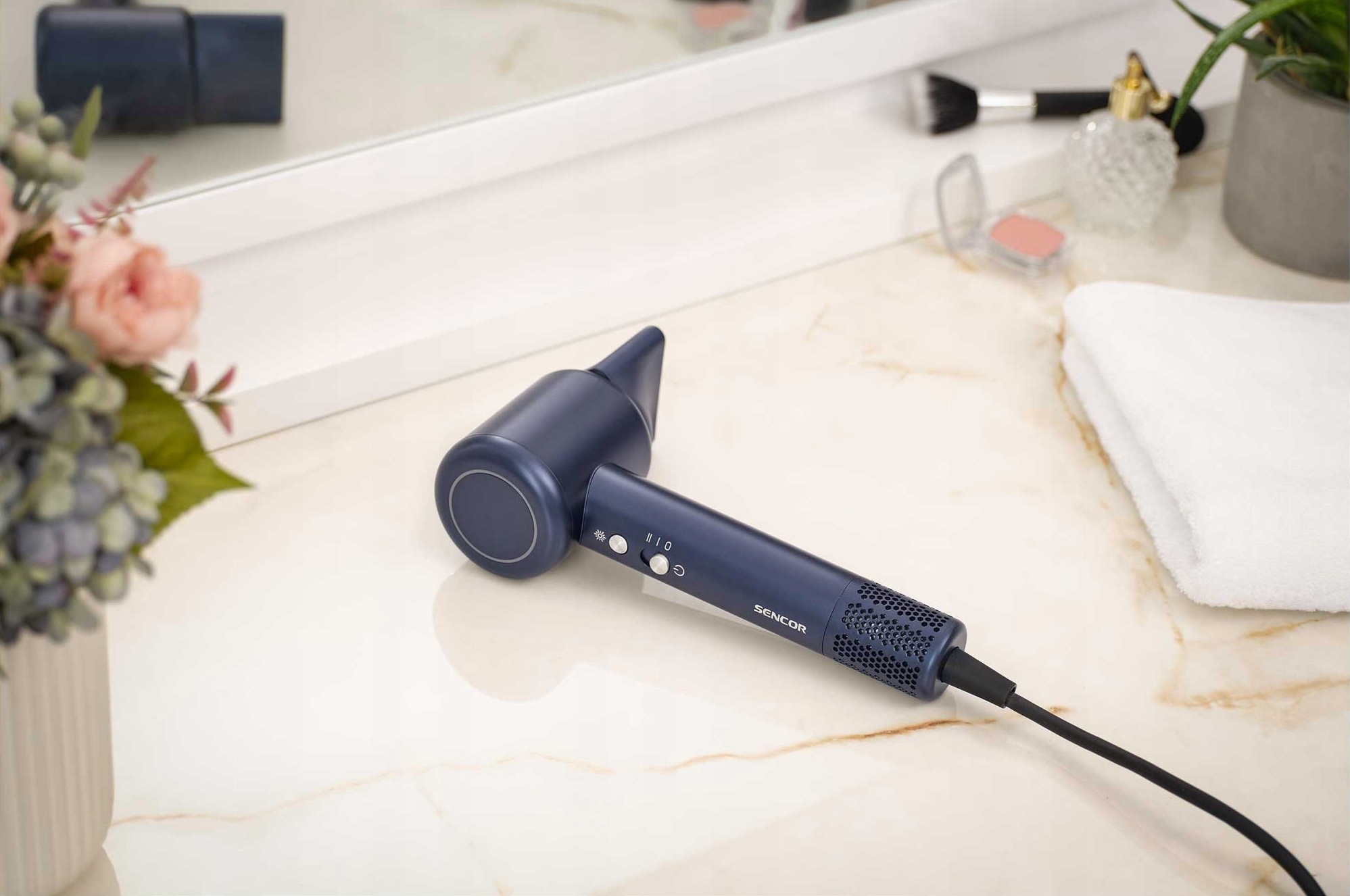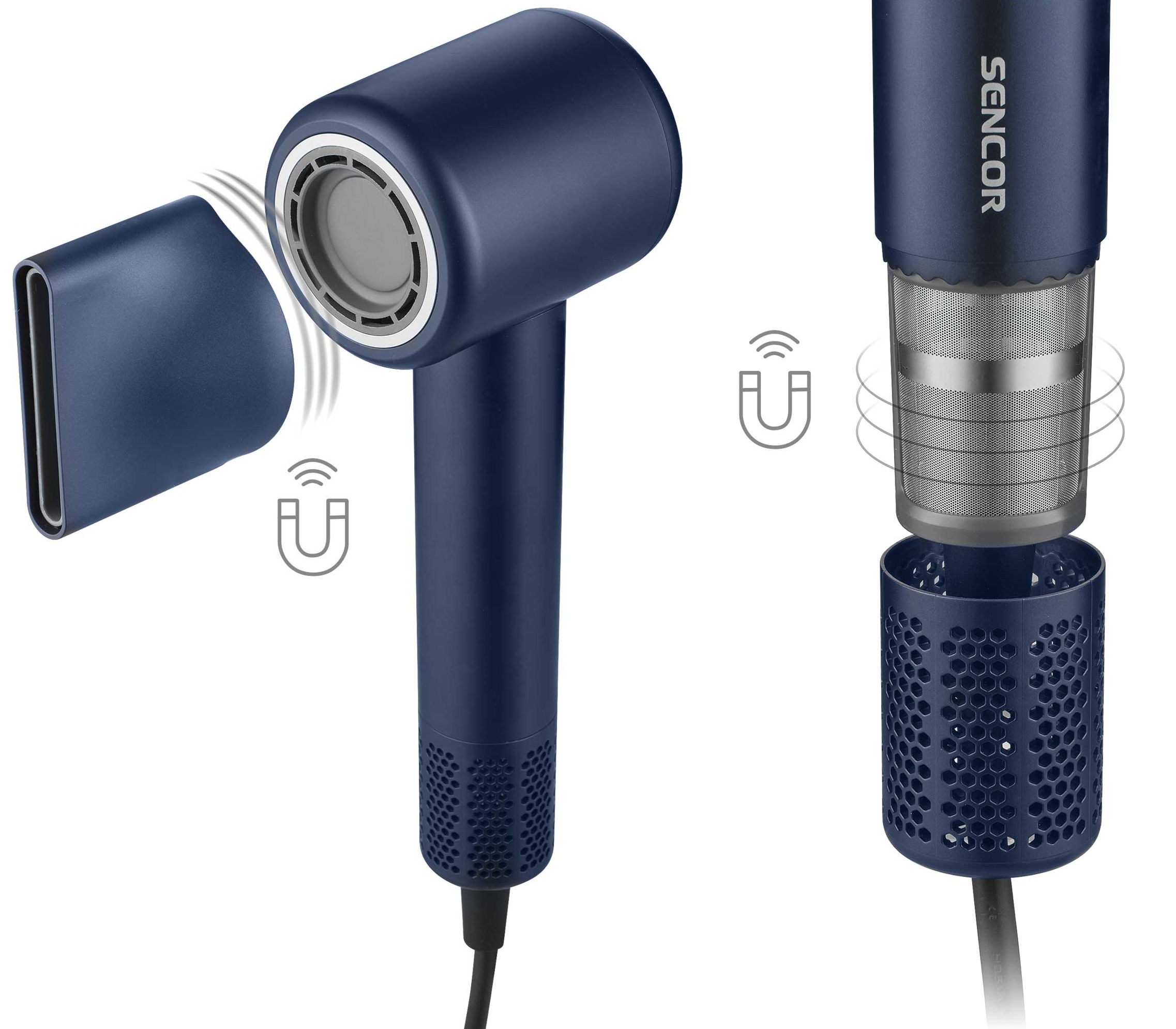 Sencor SHD 8520BL to mistrzostwo formy i funkcjonalności. Ważąc zaledwie 350 gramów, suszarka odciąża nadgarstek, sprawiając, że nawet długie modelowanie jest bezwysiłkowe. Jej minimalistyczna, granatowa obudowa kryje w sobie przemyślane rozwiązania ułatwiające życie: długi, 2,5-metrowy przewód zapewnia swobodę ruchów, a intuicyjny układ przycisków gwarantuje pełną kontrolę. Nowoczesny charakter urządzenia podkreślają magnetyczne mocowania – zarówno precyzyjny koncentrator, jak i filtr powietrza instaluje się w ułamku sekundy. To sprzęt, który jest nie tylko piękny i łatwy w czyszczeniu, ale przede wszystkim stworzony z myślą o Twoim komforcie.