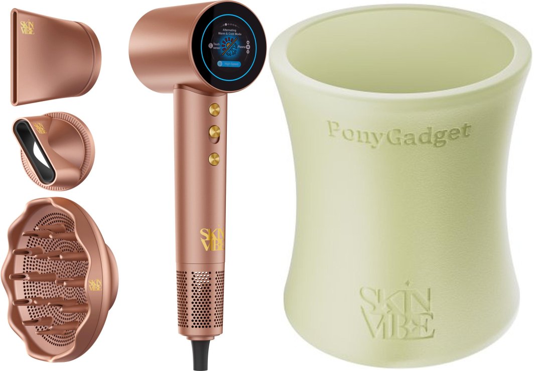 Suszarka SkinVibe SkinVibe Aurea Family X Plasma Mocha Mousse (SV-001MM) + SkinVibe PonyGadget - Guma do włosów, kremowa, XL (SV-006CR)