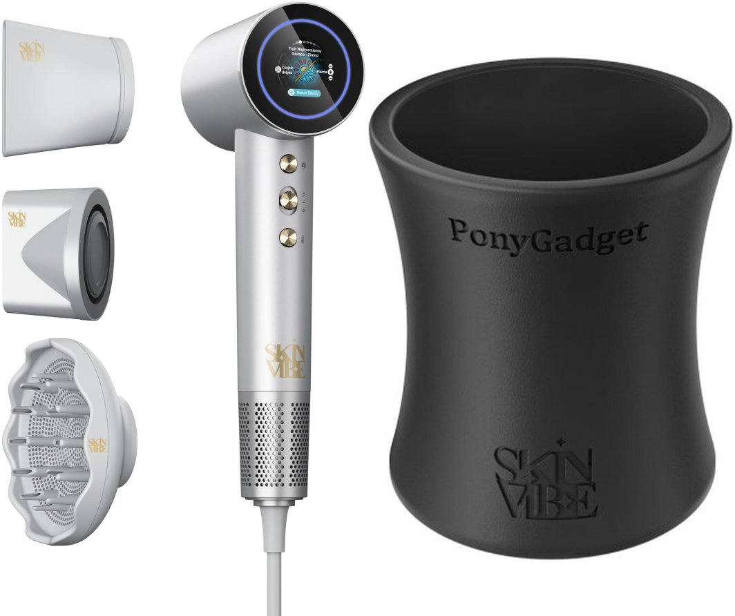 Suszarka SkinVibe SkinVibe Aurea Family X Plasma (SV-001SL) + SkinVibe PonyGadget - Guma do włosów, czarna, XL (SV-006BK)