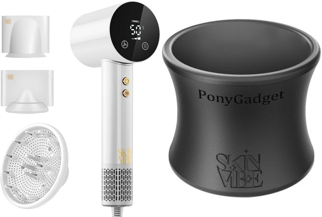 Suszarka SkinVibe SkinVibe Libra AirLoom (SV-002WH) + SkinVibe PonyGadget - Guma do włosów, czarna (SV-004BK)
