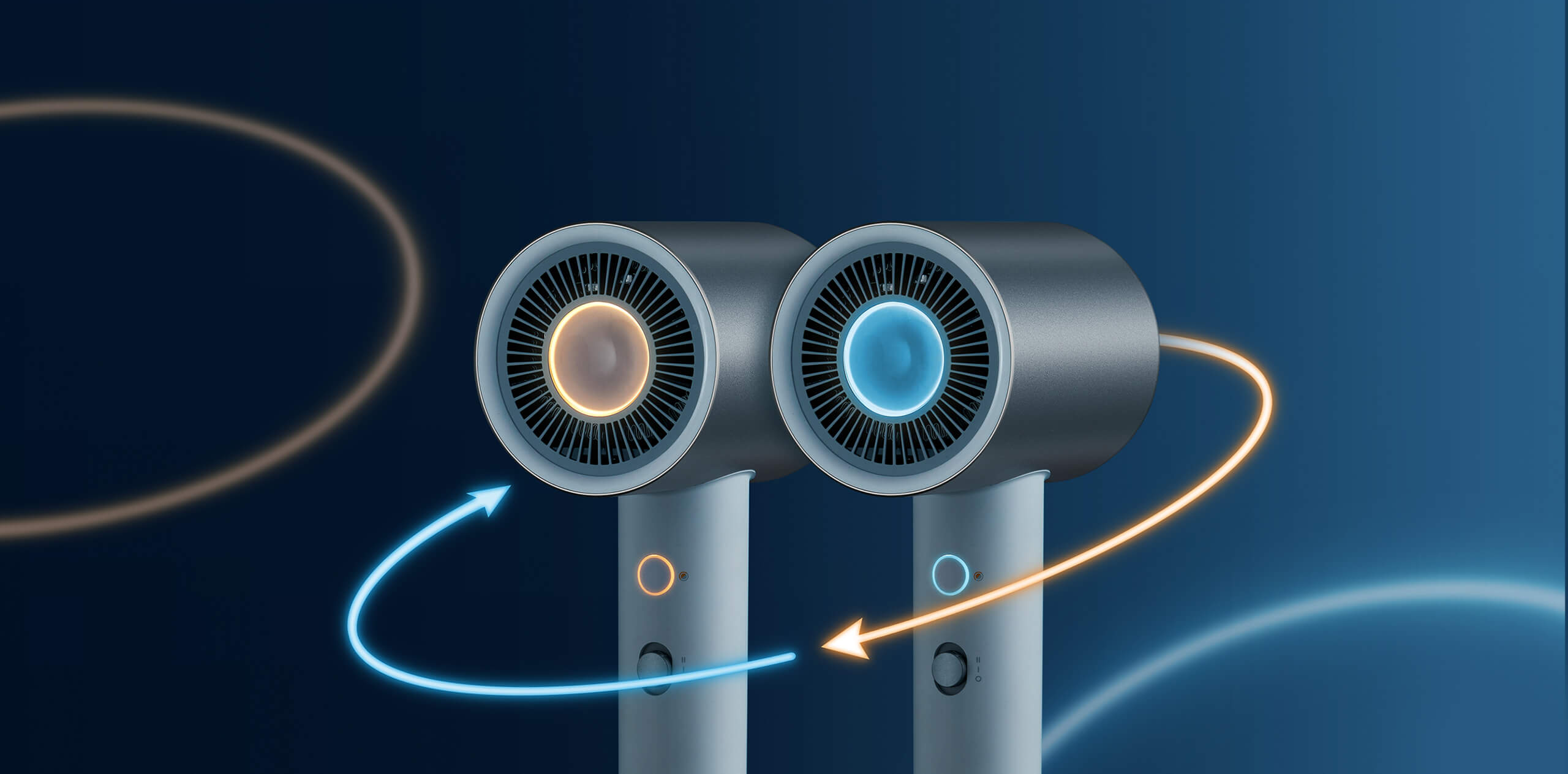 Szklany czujnik temperatury w kształcie koralika odczytuje dokładną temperaturę u wylotu powietrza 60 razy na sekundę w czasie rzeczywistym, aby zapobiegać przegrzewaniu włosów i skóry głowy. Tryb przełączania temperatury powietrza – gorące przy szybkim suszeniu i zimne do modelowania nie tylko chroni powierzchnię włosów przed przypaleniem i uszkodzeniami, ale także nawilża końcówki i pielęgnuje delikatną skórę głowy.