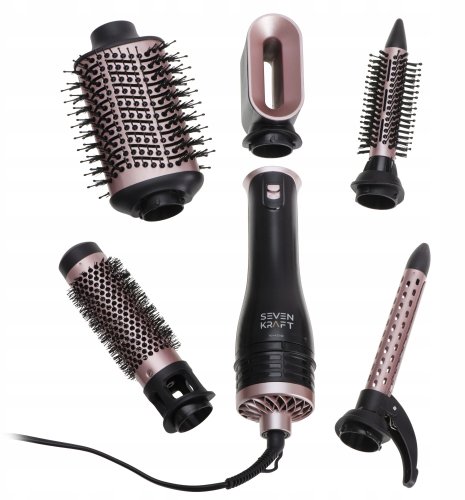 Urządzenie zostało wyposażone w pięć wymiennych nasadek, co pozwala na dostosowanie stylizacji do Twoich indywidualnych potrzeb. Niezależnie od tego, czy chcesz dodać objętości, wygładzić włosy, czy stworzyć piękne loki, lokówko-suszarka Sevenkraft SK 2029 spełni Twoje oczekiwania.