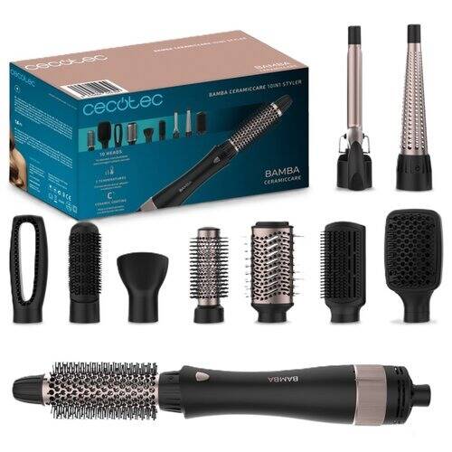 ⭐Suszarko-lokówka Bamba CeramicCare 10w1 Styler marki Cecotec to wszechstronne narzędzie do stylizacji, które z mocą 1000W szybko suszy, podkręca, prostuje i dodaje objętości. Dzięki ceramicznej powłoce jest bezpieczna dla włosów, minimalizując ryzyko przesuszenia i łamliwości. Czarny, elegancki design sprawia, że urządzenie prezentuje się stylowo, idealnie komponując się w nowoczesnych wnętrzach łazienkowych.