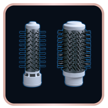 Niezależnie od długości i grubości Twoich włosów, Brush Activ Compact zapewni idealne rezultaty dzięki dwóm wymiennym szczotkom dołączonym do zestawu. Większa, 50-milimetrowa szczotka jest idealna do stylizacji włosów długich i grubych, podczas gdy mniejsza, 40-milimetrowa, doskonale radzi sobie z włosami krótkimi i średniej długości. Pełną swobodę modelowania zapewnia podwójny kierunek rotacji (w lewo lub w prawo), który ułatwia stylizację zarówno prawą, jak i lewą ręką oraz pozwala na swobodne podkręcanie końcówek do wewnątrz lub na zewnątrz.