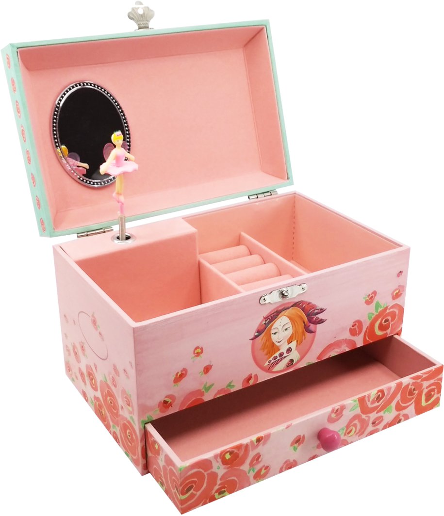 Wewnątrz pudełka znajduje się tańcząca baletnica, która przyciąga wzrok i dodaje uroku każdemu wnętrzu. Dodatkowo, szerokie lustro sprawia, że korzystanie z pudełka staje się jeszcze bardziej przyjemne. To doskonały sposób na wprowadzenie odrobiny magii do codziennych rytuałów związanych z biżuterią.