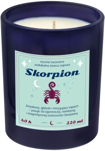 Świeca zodiakalna sojowa naturalna zapachowa SKORPION - bezpieczna, ręcznie robiona w szklanym słoiczku na prezent upominek dla osoby ze znakiem zodiaku SKORPIONA