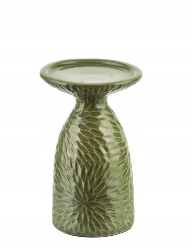 Ten ceramiczny świecznik wyróżnia się nie tylko swoim wyglądem, ale także trwałością. Głęboki zielony kolor dodaje mu wyjątkowego uroku, a jego delikatna faktura sprawia, że staje się zarówno praktycznym, jak i stylowym akcentem w Twoim domu.