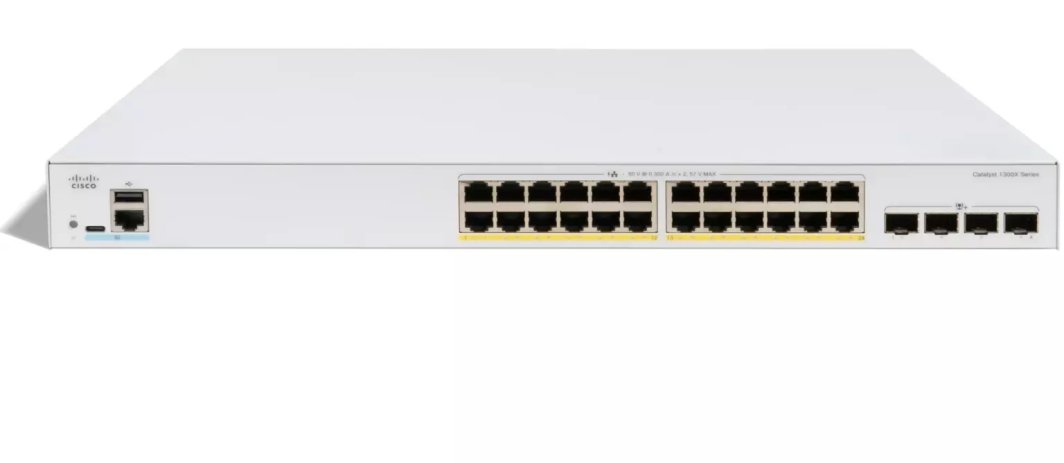 Cisco Catalyst 1300X to nowoczesny, zarządzany przełącznik sieciowy, który łączy w sobie doskonałą wydajność oraz niezawodność, co czyni go idealnym wyborem dla małych i średnich firm. Wyposażony w 24 porty Gigabit Ethernet (GE) z obsługą Power over Ethernet (PoE) oraz 4 porty 10 Gigabit SFP+, ten przełącznik dostarcza elastyczność i moc, jakiej potrzebujesz w nowoczesnej infrastrukturze sieciowej.