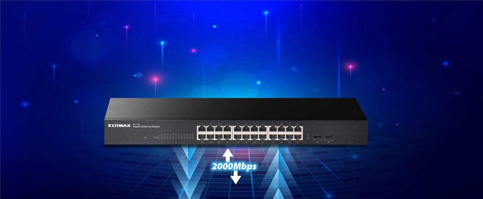 Zapewnia przepustowość do 2000 Mb/s na port w trybie pełnego dupleksu serwerom, stacjom roboczym i innym podłączonym urządzeniom, aby zaoszczędzić czas podczas przesyłania dużych plików.