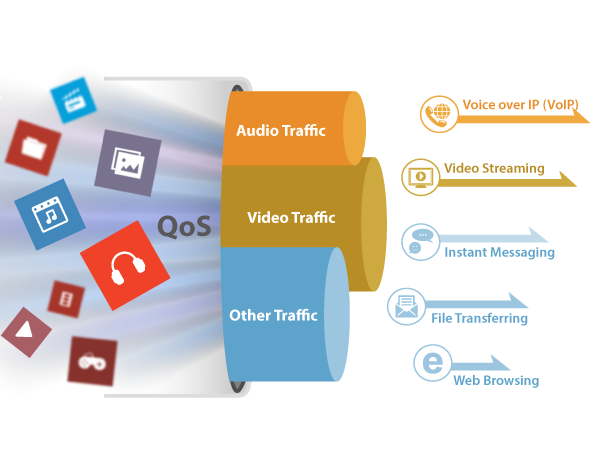 Obsługuje 802.1p QoS, zapewniając najwyższy priorytet dla ruchu głosowego i wideo w celu zmniejszenia utraty pakietów, mniejszych opóźnień i zakłóceń w sieci.