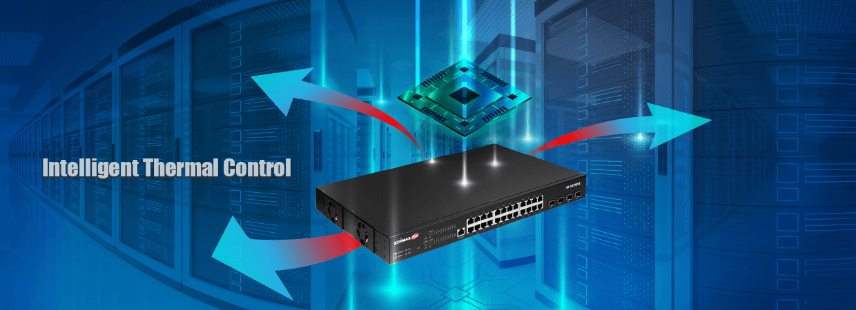 Dzięki dedykowanemu i inteligentnemu układowi do sterowania chłodzeniem systemu, GS-5424PLX może mierzyć i sterować prędkością wentylatorów, a także włączać/wyłączać każdy z nich w celu oszczędzania energii i redukcji hałasu.
