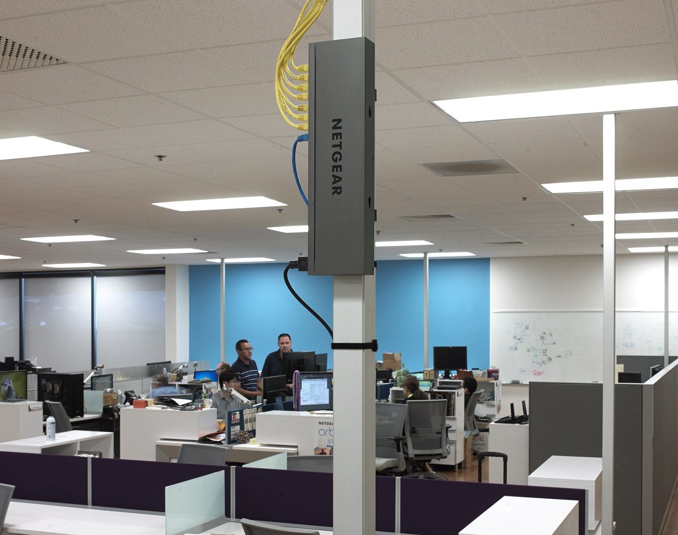 Zamontuj przełącznik PoE/PoE+ możliwie najbliżej urządzeń PoE/PoE+ i umieść porty PoE/PoE+ dokładnie tam, gdzie ich potrzebujesz. Zainstaluj porty w suficie, przymocuj do słupka lub zamontuj pod biurkiem lub stołem. Jeśli chcesz, możesz również umieścić przełącznik GS408EPP w standardowym 19-calowym stojaku. Możesz nawet zamontować obok siebie 2 przełączniki GS408EPP w szafie, w jednym gnieździe 1U. Dzięki aktywnym wentylatorom model GS408EPP jest cichym przełącznikiem, o poziomie hałasu dużo niższym niż hałas otoczenia w pomieszczeniach biurowych.