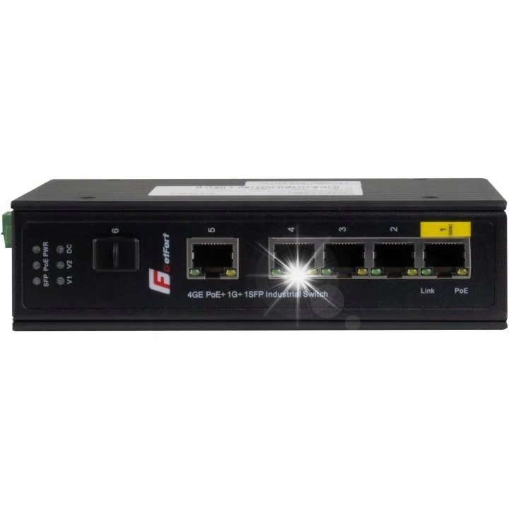 SWITCH POE GETFORT PRZEMYSŁOWY POE 4GE+1GE+1SFP to nowoczesny przełącznik sieciowy, który łączy w sobie wysoką wydajność oraz niezawodność. Wyposażony w 4 porty Gigabit PoE oraz 1 port Gigabit Uplink SFP, doskonale sprawdzi się w różnych zastosowaniach, takich jak systemy monitoringu oraz w małych i średnich przedsiębiorstwach.